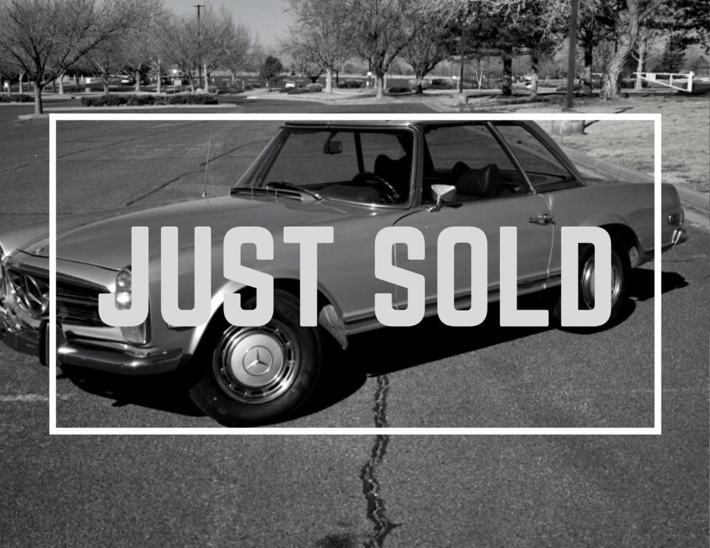 Heute wollte ich euch mal wieder eine schöne Pagode anbieten. Es handelt sich um einen Silbergrauen 280SL aus Baujahr 1970. Der Wagen hat eine blaue Lederinnenausstattung. Der Wagen wurde 1970 zu seinem Erstbesitzer nach New Mexiko ausgeliefert, wo er bis heute auch verblieben ist. Wie so oft üblich hat der Wagen eine Viergang Automatik. Das Hardtop in Wagenfarbe ist wie üblich dabei. Das Stoffverdeck ist blau und hat starke Abnutzungserscheinungen. Die letzten fünf Jahre stand der Wagen nur wurde deshalb im Februar 2022 wieder fahrtüchtig gemacht mit allem was dazugehört nach einer solchen langen Standzeit. Details dazu kann ich gerne zuschicken. Die Rechnung belief sich auf über 6.000 Dollar. Leider war der Wagen Mitte der achtziger Jahre in einen Unfall verwickelt was man auch an den Kotflügel vorne sehen kann. Vor allem die nicht vorhandenen Schweißpunkte an den Innenkotflügel sind zu erwähnen. Die Motorhaube hat leider auch ungleiche Spaltmaße. Die Sitze wurden schon mal aufgepolstert und der Fahrersitz zeigt jetzt wieder Abnutzungserscheinungen an der Aufenwange. Die 28.000 Meilen auf dem Tacho sind laut Verkäufer die Originallaufleistung. Belegbar ist das mit Reparatur und Wartungs-Belegen bis 1980. Der originale Kaufvertrag von 1970 sowie die Datenkarte sind auch vorhanden. Anhand dessen kann man die Motornummer prüfen. Man stellt fest dass der Wagen Nunbers Matching ist! Der Unterboden macht einen sauberen rostfreien Eindruck. Im Kofferraum sind allerdings Rostspuren zu erkennen.